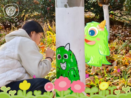 以色彩为笔、以树木为纸,冬日彩绘活动让沉默的枝干绽放创意,每一抹亮色都驱散寒意,每一笔勾勒都藏着热爱,同学们携手调色、落笔生花,让枯枝变“网红”,让协作的温度漫过整个寒冬。